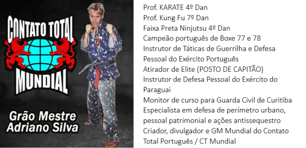 O Contato Total é uma variação de golpes mais eficientes das Lutas existentes, é uma luta de movimentos livres, uma arte híbrida com suas características próprias, não deixando seu lutador em desvantagem frente a qualquer oponente. Vivemos em uma época muito violenta, então faz-se necessário a prática de uma ARTE DE DEFESA PESSOAL que prepara muito seus praticantes para enfrentar as dificuldades da nossa sociedade. Em 1994 o Mestre Adriano Silva funda a Confederação Brasileira de Contato Total e Artes Marciais, que já promoveu diversos campeonatos e cursos em todo país, treinamento na mata atlântica, cursos de reciclagem, cursos de arbitragem, sobrevivência na selva, defesa pessoal e antiguerrilha.